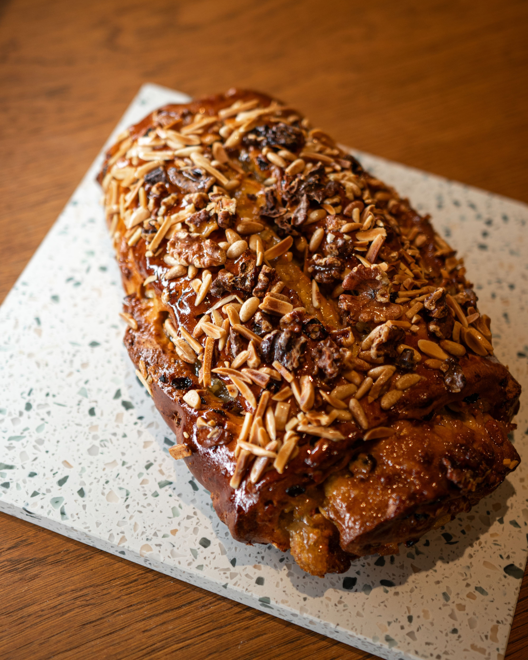 Deze bijzondere versie van de Bolo Rei combineert het zachte, rijke deeg met gekonfijt fruit, noten en een romige gila-vulling. Een ware delicatesse voor fijnproevers.